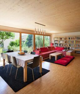 Ces dernières années, afin de contenir les coûts croissants de la construction, nous travaillons aussi le 3 plis, pour des cloisons solides et économiques, ou un escalier conçu comme une boîte auto-portante, ou des portes coulissantes… Votre budget reste ainsi maîtrisé, pour un rendu final scandinave, épuré et clair. Et si vous voulez le peindre, il suffit de l’enduire et de poser la peinture dessus.